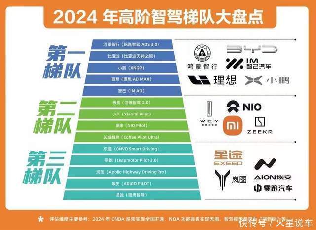 当汽车工业进入新能源时代后,除了电气化的升级更迭之外,电气化架构带来的智驾水平提升也成为了车型升级的主题,近期2024年高阶智驾风云榜正式出炉,从排行榜的情况来看,目前国内的车企在高阶智驾领域已经形成了三个梯队,接下来我们就来盘点一下各车企间的表现。